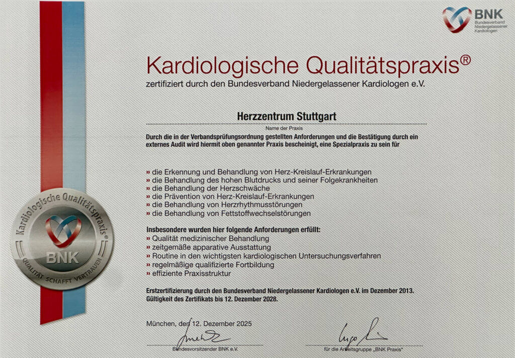 Nach einer kardiologischen Untersuchung in unserer Praxis empfehlen wir Ihnen gegebenenfalls diese Untersuchung und vereinbaren mit Ihnen einen Termin.